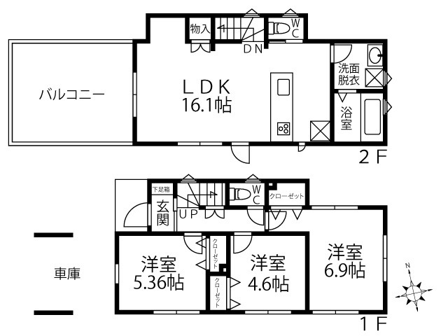 | 間取り | 3LDK | 間取り詳細 | LDK16.1・洋室5.36・洋室6.9・洋室4.6 | 専有面積 | 74.31㎡ |